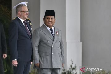 Presiden Prabowo Subianto (kanan) menerima kunjungan kenegaraan Perdana Menteri Australia Anthony Albanese (kiri) di Istana Merdeka, Jakarta, Jumat (6/2/2026). Kunjungan PM Australia Anthony Albanese tersebut untuk memperkuat hubungan kemitraan strategis kedua negara di berbagai bidang. ANTARA FOTO/Bayu Pratama S./wpa.