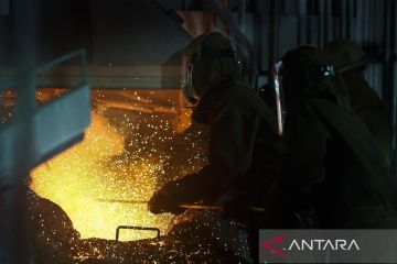 Pekerja melakukan proses peleburan timah di PT Timah Tbk di Mentok, Kabupaten Bangka Barat, Kepulauan Bangka Belitung, Kamis (16/10/2025). PT Timah Tbk menargetkan produksi bijih timah dan logam timah sebesar 21,5 ribu ton dan volume penjualan 19,06 ton hingga akhir tahun 2025 untuk dapat mencapai target yang telah ditentukan. ANTARA FOTO/Andri Saputra/tom.