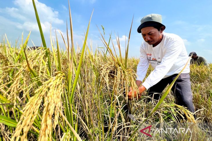Seorang petani melakukan panen di Desa Tegalkarang, Kecamatan Palimanan, Cirebon, Jawa Barat, Selasa (5/8/2025). ANTARA/HariantoDi antara mereka ada Yoyon (51), petani asal Desa Cengkuang, Kecamatan Palimanan, yang sore itu menyiapkan pupuk subsidi untuk lahan garapannya seluas 0,7 hektare.