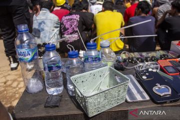Barang bukti yang berhasil diamankan dalam razia gabungan di Kampung Madani Bersih Narkoba (Bersinar), Muka Kuning, Batam, Kepulauan Riau, Jumat (7/11/2025). Dalam razia gabungan BNNP Kepri bersama Polri, TNI, dan Satpol PP tersebut berhasil mengamankan 36 orang warga yang positif mengkonsumsi narkotika setelah dilakukan tes urine. ANTARA FOTO/Teguh Prihatna/agr