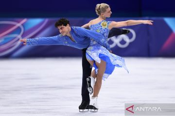 Atlet Seluncur Indah Prancis Laurence Fournier Beaudry dan Guillaume Cizeron tampil dalam kompetisi tari bebas seluncur es di Olimpiade Musim Dingin di Milan-Cortina 2026 di Milan, Italia, Rabu (11/2/2026). ANTARA FOTO/Xinhua/Cheng Min/agr