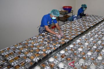 Petugas menyiapkan makanan program Makan Bergizi Gratis (MBG) khas Minang di Satuan Pelayanan Pemenuhan Gizi (SPPG) Polda Sumatera Barat di Lolong, Padang, Senin (3/11/2025). SPPG Polda Sumbar bersama Yayasan Kemala Bhayangkari menyiapkan menu Nusantara khas Minang yakni ayam balado dan lotek untuk MBG yang didistribusikan kepada sedikitnya 1.283 penerima manfaat. ANTARA FOTO/Iggoy el Fitra/tom.