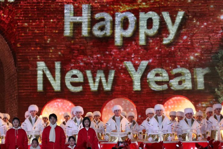 Di panggung raksasa tersebut telah hadir ratusan penabuh genderang raksasa serta sekitar 500 orang masyarakat yang antusias menyambut Tahun Baru meski di suhu -10 derajat Celcius