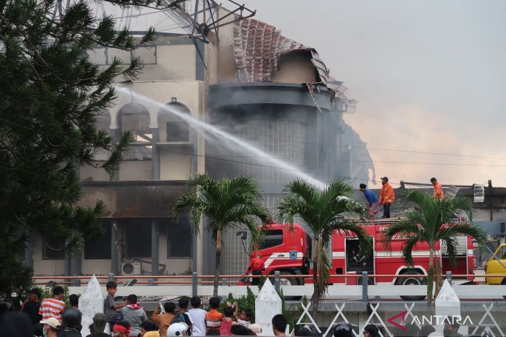 Mataram (ANTARA) - Ribuan warga memadati kawasan Jalan Udaya, Kota Mataram, Nusa Tenggara Barat, menyaksikan sisa kebakaran yang menghanguskan kantor DPRD NTB saat aksi unjuk rasa pada 30 Agustus 2025.