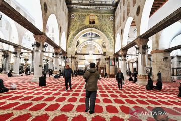 Umat Islam berjalan masuk ke dalam Masjid Al-Qibli di Komplek Al-Aqsa, kawasan Kota Tua Yerussalem, Kamis (12/2/2026). Komplek Al-Aqsa yang merupakan situs tersuci ketiga dalam Islam tersebut meliputi Masjid Al-Qibli (Kubah Perak), Dome of the Rock (Kubah Emas), Masjid Al-Buraq, dan Mushalla Al-Marwani. ANTARA FOTO/Muhammad Adimaja/bar