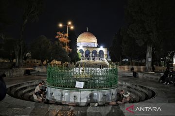 Umat Islam berjalan memasuki kawasan Masjid Dome of the Rock di Komplek Al-Aqsa, kawasan Kota Tua Yerussalem, Kamis (12/2/2026). Komplek Al-Aqsa yang merupakan situs tersuci ketiga dalam Islam tersebut meliputi Masjid Al-Qibli (Kubah Perak), Dome of the Rock (Kubah Emas), Masjid Al-Buraq, dan Mushalla Al-Marwani. ANTARA FOTO/Muhammad Adimaja/bar