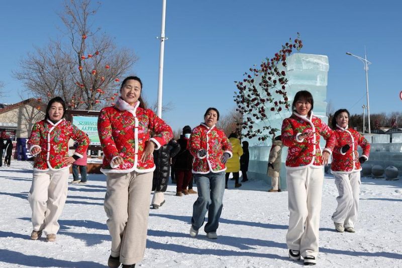 Orang-orang menari saat acara memancing musim dingin di Danau Wolong di wilayah Kangping, Shenyang, Provinsi Liaoning, China timur laut, pada 24 Januari 2026. (ANTARA/Xinhua/Li Gang)
