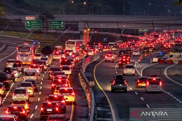 Kendaraan roda empat yang didominasi pemilir melaju perlahan menyusul pemberlakuan sistem dua jalur satu arah di Tol Trans Jawa, Semarang-Solo Km 442, Bawen, Kabupaten Semarang, Jawa Tengah, Selasa (24/3/2026). Ditlantas Polda Jateng pada Selasa (24/3) atau H+2 Lebaran mulai pukul 17.36 WIB memberlakukan sistem satu arah lokal secara situasional dari arah Tol Salatiga KM 459 hingga GT Kalikangkung KM 414 menyusul meningkatnya volume kendaraan. ANTARA FOTO/Aji Styawan/nym.