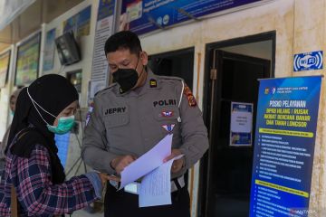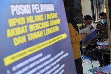 Anggota Ditlantas Polda Aceh melayani warga yang akan mengurus kehilangan Buku Pemilik Kendaraan Bermotor (BPKB) dan Surat Tanda Nomor Kendaraan (STNK) di Polres Aceh Tamiang, Aceh, Senin (26/1/2026). Polda Aceh bekerja sama dengan Pemerintah Provinsi Aceh membuka posko pelayanan khusus bagi masyarakat terdampak bencana banjir dan tanah longsor untuk pengurusan STNK dan BPKB yang hilang maupun rusak. ANTARA FOTO/Nova Wahyudi/wsj.