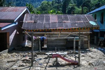 Kondisi rumah warga yang ditinggal di Desa Pasir Putih, Kecamatan Pining, Kabupaten Gayo Lues, Aceh, Sabtu (31/1/2026). Desa Pasir Putih, Kecamatan Pining yang dihuni oleh 157 KK menjadi salah satu desa yang terisolir akibat jembatan yang putus serta listrik yang belum pulih pascabencana banjir bandang dan longsor pada akhir November 2025 lalu. ANTARA FOTO/Raisan Al Farisi/wpa