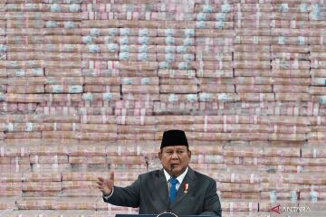 Presiden Prabowo Subianto menyampaikan pidato pada kegiatan Penyerahan Denda Administratif dan Penyelamatan Keuangan Negara serta Penguasaan Kembali Kawasan Hutan Tahap VI di Gedung Bundar Kejaksaan Agung di Jakarta, Jumat (10/4/2026). Satuan Tugas Penertiban Kawasan Hutan (Satgas PKH) menyerahkan uang Rp11,42 triliun ke kas negara dari hasil penagihan denda administratif di bidang kehutanan senilai Rp7,23 triliun, hasil Penerimaan Negara Bukan Pajak (PNBP) dari penanganan tindak pidana korupsi Kejaksaan RI senilai Rp1,96 triliun, penerimaan setoran pajak Januari hingga April 2026 senilai Rp967,77 miliar, pendapatan negara melalui penyetoran pajak periode 28 Februari 2026 PT Agrinas Palma Nusantara sebesar Rp108,57 miliar, serta hasil PNBP dari denda lingkungan hidup senilai Rp1,14 triliun. ANTARA FOTO/Fakhri Hermansyah/foc.