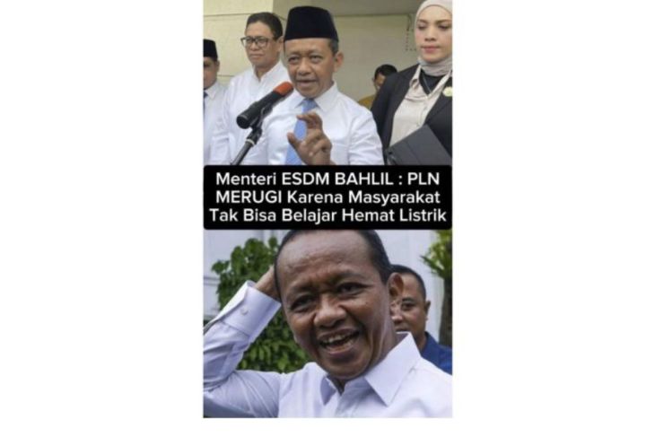 Jakarta (ANTARA/JACX) – Sebuah unggahan di media sosial Facebook mengeklaim bahwa Menteri Energi dan Sumber Daya Mineral (ESDM) Bahlil Lahadalia menyebut PT PLN merugi karena masyarakat tidak hemat dalam menggunakan listrik.