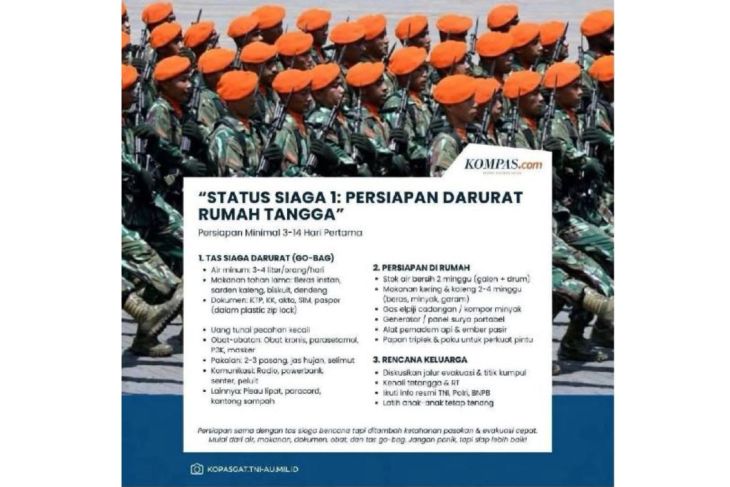 Istilah “Siaga 1” dalam konteks tersebut merupakan istilah yang umum digunakan di lingkungan militer, bukan instruksi kepada masyarakat sipil untuk melakukan persiapan darurat.