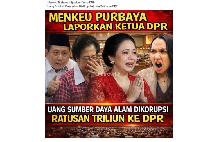 Jakarta (ANTARA/JACX) – Sebuah unggahan di Facebook menarasikan bahwa Menteri Keuangan Purbaya Yudhi Sadewa melaporkan Ketua DPR Puan Maharani atas dugaan korupsi dana sumber daya alam (SDA) senilai ratusan triliun rupiah yang disebut mengalir ke DPR.