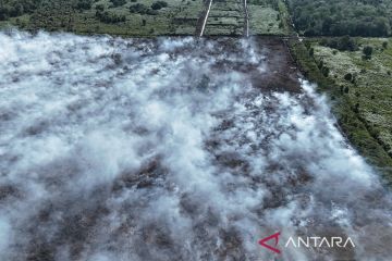 Foto udara kebakaran hutan dan lahan (karhutla) di lahan gambut Desa Suak Raya, Johan Pahlawan, Aceh Barat, Aceh, Sabtu (17/1/2026). Polres Aceh Barat sebelumnya telah sering memberikan sosialisasi tentang larangan membuka lahan dengan cara membakar namun aktivitas pembukaan lahan baru dengan cara dibakar masih sering dilakukan oknum tidak bertanggung jawab, sementara berdasarkan data Pusat Pengendalian dan Operasi Penanggulangan Bencana (Pusdalops PB) BPBD Aceh Barat luas kebakaran karhutla telah mencapai 5 hektare. ANTARA FOTO/Syifa Yulinnas/tom.