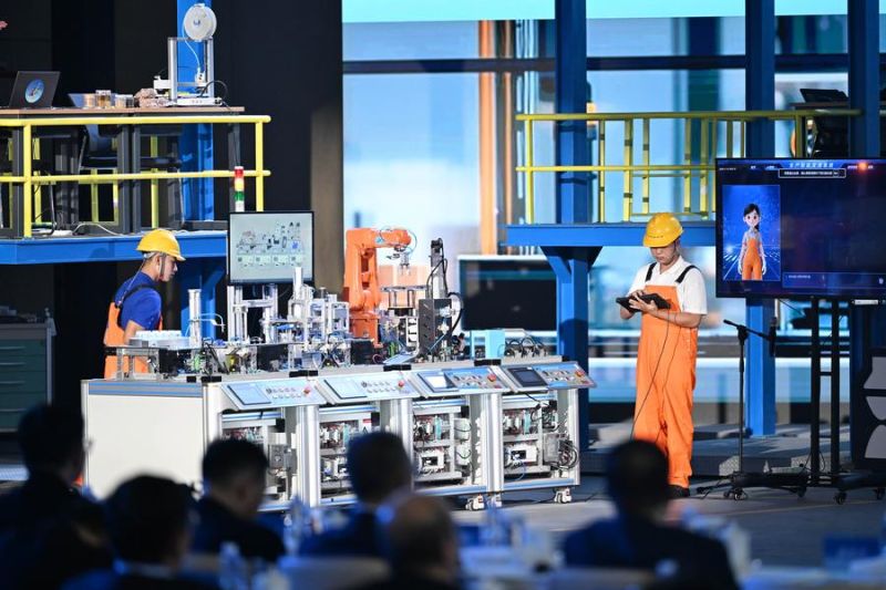 Peserta dari Universitas Teknik Kazakhstan Timur tampil dalam Kompetisi Keterampilan Perguruan Tinggi Vokasi Dunia (World Vocational College Skills Competition) 2025 di Tianjin, China, pada 14 November 2025. (Xinhua/Zhao Zishuo)