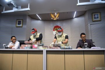 Petugas KPK menunjukkan barang bukti berupa uang tunai terkait Operasi Tangkap Tangan (OTT) Bupati Pati dan Wali Kota Madiun kepada media di Gedung KPK Merah Putih, Jakarta, Selasa (20/1/2026). KPK melakukan operasi tangkap tangan terhadap Bupati Pati Sudewo terkait kasus dugaan suap jual beli jabatan dengan barang bukti Rp2,6 miliar, dan Wali Kota Madiun Maidi terkait kasus dugaan suap fee proyek dan dana CSR di Madiun dengan barang bukti Rp550 juta. ANTARA FOTO/Muhammad Adimaja/YU