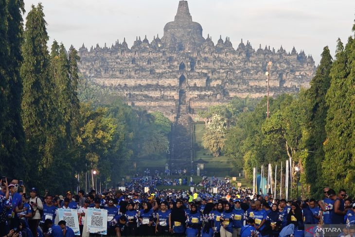 7.000 peserta lari maraton untuk solidaritas korban bencana Pulau Sumatera dalam rangkaian Hari Kesetiakawanan Sosial Nasional (HKSN) 2025 di kawasan Candi Borobudur, Magelang, Jawa Tengah, Minggu (21/12/2025). ANTARA/M Riezko Bima Elko PrasetyoSalah satu peserta maraton asal Jakarta, Rita (28), mengapresiasi kegiatan yang diinisiasi pemerintah bersama sejumlah mitra strategis.