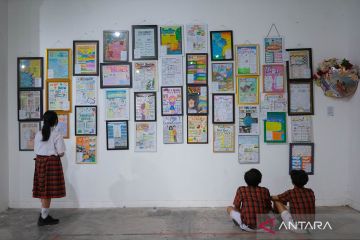 Pengunjung mengamati karya yang dipamerkan saat pameran seni Gelar Karya 2026 bertajuk Ragam Warna Harmoni Rasa di Taman Budaya Yogyakarta, Kamis (26/3/2026). Pameran yang menampilkan ratusan karya dari Pelajar SMP Stella Duce 1 Yogyakarta itu menggambarkan keberagaman bakat kreativitas serta menjadi perayaan atas proses kreatif, ketekunan, dan ekspresi jati diri pelajar. ANTARA FOTO/Andreas Fitri Atmoko/bar