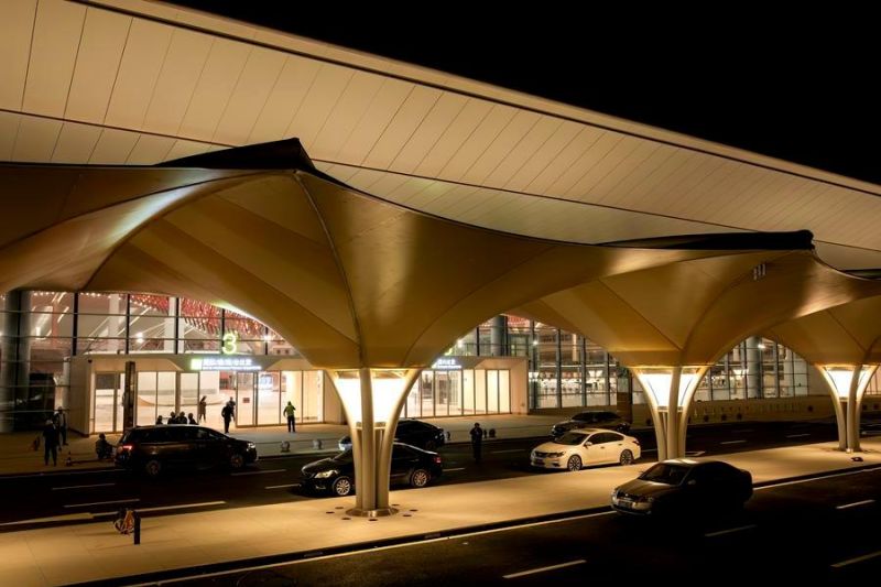 Foto yang diabadikan pada 20 Januari 2026 ini menunjukkan pemandangan bagian luar aula keberangkatan Bandar Udara Internasional Xiang'an Xiamen di Xiamen, Provinsi Fujian, China. (Xinhua/Wei Peiquan)