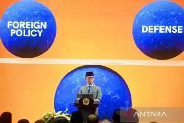 Menteri Luar Negeri Sugiono menyampaikan paparan dalam Pernyataan Pers Tahunan Menteri Luar Negeri (PPTM) 2026 di Jakarta, Rabu (14/1/2026). Dalam acara tersebut Menlu Sugiono menyerahkan penghargaan Adam Malik Awards 2026 untuk kategori media daring terbaik kepada portal Kantor Berita ANTARA, Antaranews.com serta mengumumkan capaian diplomasi Indonesia sepanjang tahun 2025 salah satunya yaitu menegaskan peran aktif Indonesia dalam pembahasan pembentukan International Stabilization Force (ISF) sebagai langkah transitional untuk memastikan terwujudnya gencatan senjata permanen sekaligus membuka akses bantuan kemanusiaan di Gaza. ANTARA FOTO/Rivan Awal Lingga/tom