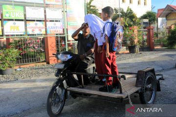 Sejumlah siswa bersalaman dengan orang tuanya saat pada hari pertama masuk sekolah di Sekolah Dasar Negeri 01 Percontohan Meulaboh, Aceh Barat, Aceh, Senin (30/3/2026). Siswa kembali ke sekolah dan mengikuti kegiatan belajar mengajar setelah libur hari raya Idul Fitri 1447 Hijriah. ANTARA FOTO/Syifa Yulinnas/sgd
