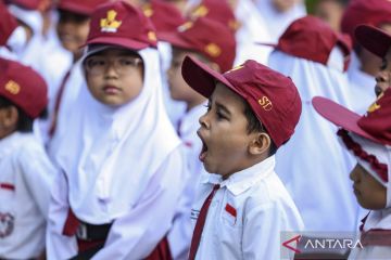 Seorang siswa sekolah dasar menguap saat hari pertama masuk sekolah di SD Negeri 1 Ternate, Maluku Utara, Senin (30/3/2026). Siswa di daerah itu mulai masuk sekolah usai libur hari raya Idul Fitri 1447 Hijriah diisi dengan tradisi bersalaman antara siswa dan guru sebelum memulai pembelajaran. ANTARA FOTO/Andri Saputra/sgd