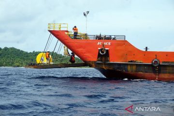 Petugas bersiap menurunkan mooring buoy untuk menambatkan kapal di area VI perairan Kepulauan Fam, Distrik Waigeo Barat Kepulauan, Kabupaten Raja Ampat, Papua Barat Daya, Rabu (21/1/2026). Pemerintah Provinsi Papua Barat Daya dan Kabupaten Raja Ampat mulai memberlakukan pemasangan mooring buoy sebagai komitmen pemerintah dan para pemerhati lingkungan dalam melindungi terumbu karang dari ancaman kerusakan akibat jangkar kapal yang berlabuh di perairan Raja Ampat. ANTARA FOTO/Olha Mulalinda/nz