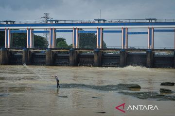 Warga melempar jala untuk menangkap ikan dari aliran Sungai Cisadane di Pintu Air Sepuluh, Kota Tangerang, Banten, Kamis (12/2/2026). Kementerian Lingkungan Hidup menemukan adanya pencemaran cairan bahan pestisida yang mengalir dari Sungai Jaletreng hingga Sungai Cisadane dengan luasan kurang lebih 22,5 kilometer meliputi wilayah Kota Tangerang Selatan, Kota Tangerang dan Kabupaten Tangerang, yang berdampak pada kematian berbagai biota akuatik. ANTARA FOTO/Putra M. Akbar/rwa.