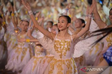 Peserta menampilkan tarian saat Parade Chingay pada perayaan Tahun Baru Imlek di Singapura, Jumat (27/2/2026). ANTARA FOTO/Xinhua/Then Chih Wey/agr