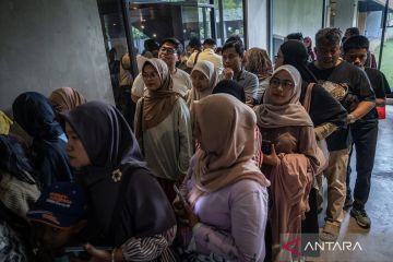 Pengunjung antre untuk mendapatkan tiket masuk ke Planetarium Jakarta di Taman Ismail Marzuki (TIM), Cikini, Jakarta, Kamis (25/12/2025). Planetarium dan Observatorium Jakarta kembali beroperasi setelah 13 tahun nonaktif akibat renovasi dengan fasilitas dan teknologi yang diperbarui untuk meningkatkan layanan edukasi astronomi kepada masyrakat. ANTARA FOTO/Bayu Pratama S/agr
