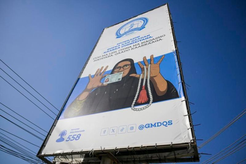 Foto yang diabadikan pada 11 Januari 2026 ini menunjukkan papan reklame yang menampilkan poster pemilihan umum di Mogadishu, Somalia. (Xinhua/Yang Guang)