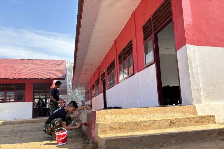 Prajurit TNI bekerja keras melakukan pengerjaan fisihing di SDN 1B Tukka, Kecamatan Tukka,Kabupaten Tapanuli Tengah, Sumatera Utara pada Selasa (27/1/2026) (ANTARA/Mario Sofia Nasution)Selain itu, melakukan pengecatan sekolah dan melakukan penyelesaian (finishing) pembangunan di sekolah tersebut.