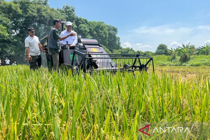 Menteri Pertanian Andi Amran Sulaiman menjajal alat mesin pertanian combine harvester di lahan pertanian Balai Perakitan dan Modernisasi Pertanian (BRMP) Serpong, Tengerang, Banten, Senin (3/11/2025). ANTARA/HariantoDengan terjadinya lompatan produksi dibanding tahun sebelumnya dimana proyeksi BPS sebesar 34,77 juta ton dan hampir sesuai dengan angka proyeksi global, hal ini menunjukkan bagaimana kebijakan pertanian nasional kini berjalan efektif dan terimplementasi dengan baik di lapangan.