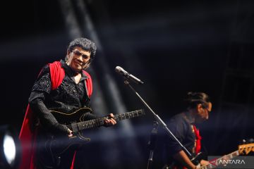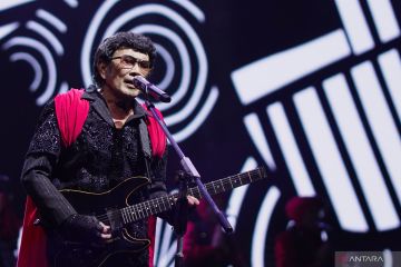 Musisi dangdut Rhoma Irama bersama grup Soneta tampil pada konser bertajuk Rhoma Irama Selebrasi 55th Soneta di Jakarta International Velodrome, Jakarta, Sabtu (13/12/2025). Dalam konser tersebut Rhoma Irama membawakan sejumlah lagu hitsnya dan menampilkan bintang tamu Yuni Shara, Armand Maulana dan Nicky Astria. ANTARA FOTO/Zarqoni Maksum/nym.