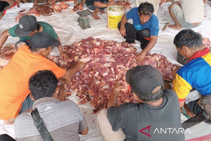 "Daging ini bukan untuk umat Islam saja, tapi bagi warga beragama Kristen pun mendapatkan daging, kami bagi sama rata," ujarnya.