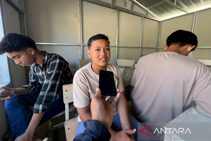 Afdal Maulana, salah satu siswa yang juga Ketua Kelas XII-1 SMAN 1 Baktiya, Aceh Utara menjawab pertanyaan ANTARA ditemui di sekolah itu di Kabupaten Aceh Utara, Rabu (28/1/2026). ANTARA/HariantoAfdal Maulana, salah satu siswa yang juga Ketua Kelas XII-1 SMAN 1 Baktiya Aceh Utara, mengaku tetap senang mengikuti pembelajaran meski dalam kondisi darurat pascabanjir, karena demi menyiapkan diri menghadapi ujian akhir sekolah menengah atas di tahun ini.