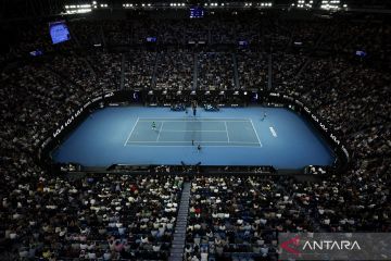 Suasana final Australian Open ataran petenis Spanyol Carlos Alcaraz dan petenis Serbia Novak Djokovic di Melbourne, Australia, Minggu (1/2/2026). Carlos Alcaraz mampu menang dengan skor 2-6, 6-2, 6-3, dan 7-5, untuk memastikan gelar juara Australian Open sekaligus mencatatkan sejarah sebagai petenis pria termuda sepanjang sejarah yang meraih empat titel grand slam yang berbeda di usia 22 tahun 272 hari, mengalahkan Rod Laver 24 tahun 32 hari, dan Rafael Nadal 24 tahun 102 hari. ANTARA FOTO/Xinhua/Ma Ping/bar
