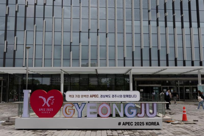 Foto yang diambil pada 24 September 2025 ini menunjukkan tanda tentang KTT Kerjasama Ekonomi Asia-Pasifik (APEC) di Gyeongju, Korea Selatan, ANTARA/Xinhua/Jun Hyosang Dia mengatakan bahwa China, Jepang, dan Korsel, yang telah memainkan peran signifikan dalam mekanisme kerja sama multilateral di bawah kerangka APEC, harus bersama-sama mendorong perdagangan bebas dan pemulihan ekonomi global, seraya menuturkan bahwa ketiga negara harus memperkuat kerja sama dalam mesin-mesin pertumbuhan masa depan seperti kecerdasan buatan (artificial intelligence/AI), revolusi digital, dan industri hijau