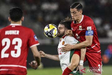 Pesepak bola Timnas Indonesia Jay Idzes (kanan) berebut bola dengan pesepak bola Bulgaria Christian Stoyanov (kedua kanan) saat final FIFA Series 2026 di Stadion Utama Gelora Bung Karno (SUGBK), Senayan, Jakarta, Senin (30/3/2026). Timnas Indonesia dikalahkan Bulgaria dengan skor 0-1. ANTARA FOTO/Fauzan/hma/bar
