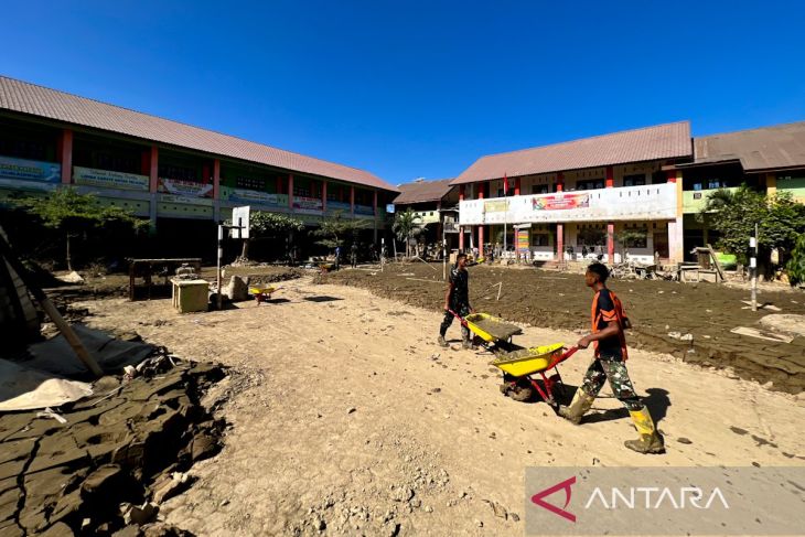 Dia menuturkan proses pembersihan dilakukan secara manual sejak hampir 10 hari menggunakan arco, cangkul, dan sekop, karena alat berat seperti ekskavator dan dump truck tidak dapat masuk ke area sekolah.
